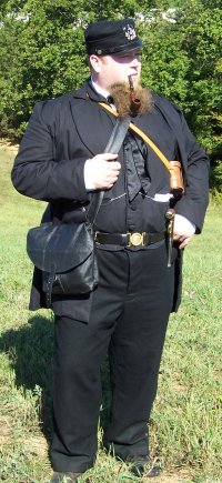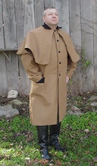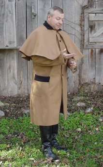![]() You will want to wear this frock everyday, re-enactment or not. This pattern will work from the early 1850's to 1890's with no problem. You can buy one coat and cover all the era's you portray. Now that's a bargain at any price. They are made from 100% wool, no man made materials at all. Fully lined with black cotton for the body and checked pattern, woven cotton for the sleeve lining. They have one inside pocket over the left breast. They have 4 hand stitched button holes and 4 cloth covered buttons on the body. The sleeves have 2 non working cloth covered buttons on each sleeve and one button on each side of the tail. They fit wonderfully. If you can find a better coat buy it. I don't think you can. The handsome young fellow on the right wearing our coat, pants and vest is Tom Bennett. Among other well known characters Tom sometimes portrays Charles Dickens. Thanks for the photo Tom! AVAILABLE IN BLACK ONLY.CHOOSE YOUR SIZE FROM THE LIST BELOW.SIZE 40 FROCK, CIVILIAN SINGLE BREASTED ITEM #918 $149.95 BUY NOW! SIZE 42 FROCK, CIVILIAN SINGLE BREASTED ITEM #918 $149.95 BUY NOW! SIZE 44 FROCK, CIVILIAN SINGLE BREASTED ITEM #918 $149.95 BUY NOW! SIZE 46 FROCK, CIVILIAN SINGLE BREASTED ITEM # 918 $169.95 BUY NOW! SIZE 48 FROCK, CIVILIAN SINGLE BREASTED ITEM # 918 $169.95 BUY NOW! SIZE 50 FROCK, CIVILIAN SINGLE BREASTED ITEM # 918 $169.95 BUY NOW! SIZE 52 FROCK, CIVILIAN SINGLE BREASTED ITEM # 918 $189.95 BUY NOW! SIZE 54 FROCK, CIVILIAN SINGLE BREASTED ITEM # 918 $189.95 BUY NOW! SIZE 56 FROCK, CIVILIAN SINGLE BREASTED ITEM # 918 $189.95 BUY NOW! COTTON CIVILIAN FROCK COAT