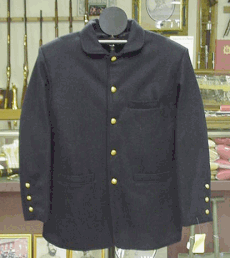 UNION OFFICERS 5 BUTTON SACK COATIt is lined with black polished cotton and comes with the Eagle I buttons sewn on. The button holes are hand sewn. It has working cuffs with 3 small eagle i buttons per sleeve. They have 3 exterior pockets and one inside left breast pocket. IF YOU HAVE SPECIAL FITTING NEEDS (XX LONG ETC.) YOU MUST USE THE SIZE CHART TO INDICATE YOUR EXACT SIZE. THERE IS SOMETIMES BUT NOT ALWAYS AN EXTRA FEE FOR SPECIAL FITTING. Click here for ****SIZE CHART**** SIZE 40 OFFICERS SACK COAT #670A $129.95 BUY NOW! SIZE 42 OFFICERS SACK COAT #670A $129.95 BUY NOW! SIZE 44 OFFICERS SACK COAT #670A $129.95 BUY NOW! SIZE 46 OFFICERS SACK COAT #670A $129.95 BUY NOW! SIZE 48 OFFICERS SACK COAT #670A $139.95 BUY NOW! SIZE 50 OFFICERS SACK COAT #670A $139.95 BUY NOW! SIZE 52 OFFICERS SACK COAT #670A $149.95 BUY NOW! SIZE 54 OFFICERS SACK COAT #670A $149.95 BUY NOW! SIZE 56 OFFICERS SACK COAT #670A $149.95 BUY NOW! SIZE 58 OFFICERS SACK COAT #670A $179.95 BUY NOW! SIZE 60 OFFICERS SACK COAT #670A $179.95 BUY NOW! JUNIOR OFFICERS FROCK COAT
