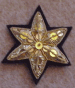 All of our five pointed stars are sold by the pair only. They are gold bullion embroidered on a wool background.