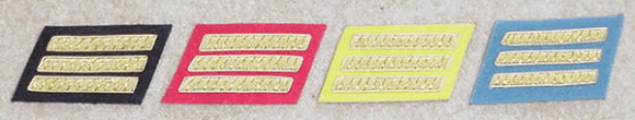 UNION MEDICAL STEWARD'S CHEVRONSUNION HOSPITAL STEWARDS CHEVRONS. THERE A PERFECT REPRODUCTION OF THE ORIGINALS. YOUR NOT QUALIFIED TO CARRY A LITTER IF YOU DON'T HAVE A PAIR OF THESE.SORRY, WE DO NOT SEW THESE ON ITEM # 703 UNION MEDICAL STEWARD'S CHEVRONS $19.95 BUY NOW! CONFEDERATE OFFICERS COLLAR TABSWE CARRY GOLD BULLION EMBROIDERED CONFEDERATE COLLAR TABS ON A VARIETY OF DIFFERENT COLORED BACKGROUNDS TO MATCH YOUR COLLAR.