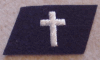 CHAPLAIN COLLAR INSIGNIA. A SILVER EMBROIDERED CROSS ON A STANDARD SIZE COLLAR TAB. YOU CAN SEW THEM ON AS THEY ARE OR CUT THE EMBROIDERED CROSS OFF AND SEW IT ON TO MAKE IT LOOK LIKE IT WAS EMBROIDERED DIRECTLY ONTO THE COLLAR.