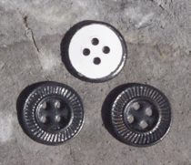 I've finally been able to secure a button that I've been looking for, for some time. The lined (lined refers to the design on the front of the button) 4 hole tin button with paper back, with a black lacquer finish. I think these buttons are great and offer a period alternative to the plain paper back tin that you see everywhere. These are your standard pant/shirt size buttons.