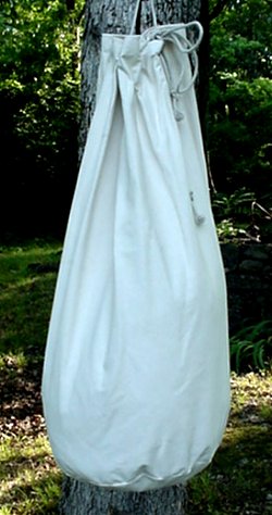 Just in time for Hurricane season! Blockade Runner's large heavy duty sea bags are ready to go. This bag (when laid flat) measures 22 inches wide and 32 inches tall. Man that holds a lot of dirty clothes. The weave of this canvas is so tight that if you used this bag for a sea anchor it will stop you dead. It has 8 brass grommets with a heavy hemp cord laced through. The only thing this bag needs is your art work, stencils or needle point.