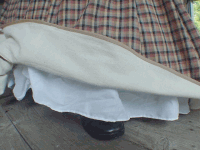 First lets talk about your basic camp skirt; For many women this is the first garment of their impression that they will purchase, it is great for the novice re-enacter who is just getting into the hobby, or for a "seasoned" re-enactor who just needs another skirt in case of foul weather at the event, a.k.a. MUD! You don't want your best to end up filthy and permanently stained but still you must be dressed in period attire. This little skirt is just the thing for those occasions.