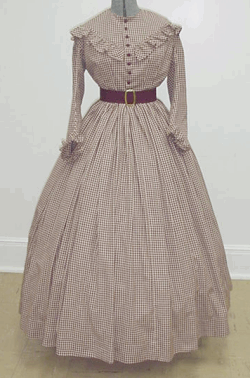 Day Dress This dress, in it's basic form, though still very inexpensive can be used in many more settings than the camp dress. It is still very functional for a stroll through camp and is also suitable for work, albeit more genteel work.