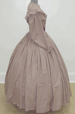 In the photo right Connie has added a white cotton sewn collar to this outfit, any other style, crochet, lace, etc. would be just as becoming. Although the sleeves are narrow at the wrist on this style bodice there is still room enough to add under sleeves should you desire. Under sleeves and collars of matching colors are very fashionable with the Day Dress.
