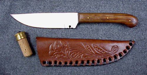 Here's a very well made traditional style hunting knife. Bone handle, 7 inch blade and 11 inches overall. The handle and weight are very comfortable and of course it comes with a leather sheath. They have a decent edge right out of the box too.
