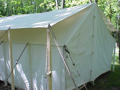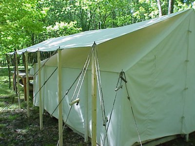 No ridge pole required as your tent's ridge takes care of that. This set up includes 10, five foot long 2x2s with 3/8 inch iron pins, 10 long ropes with length adjusters and 10 stakes. Assembles in minutes but gives you and your tent a lifetime of protection against the sun's rays and heat. Maybe your tent is getting a little old, has a few leaks? This will solve that problem.