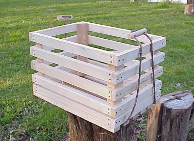 This is not the old crate we used to steal from behind the grocery store to put our albums in. This is made for the field. Tuff is not the word for them, they are over engineered, nailed and glued to last for years but they only weight 10 lbs.! Leave them plain, paint or stain them. You can see in the photo above I've added a rope and handles to mine so two can share the load easily. When you're carrying 40 lbs. of ice for 1/2 a mile a little help goes a long way.